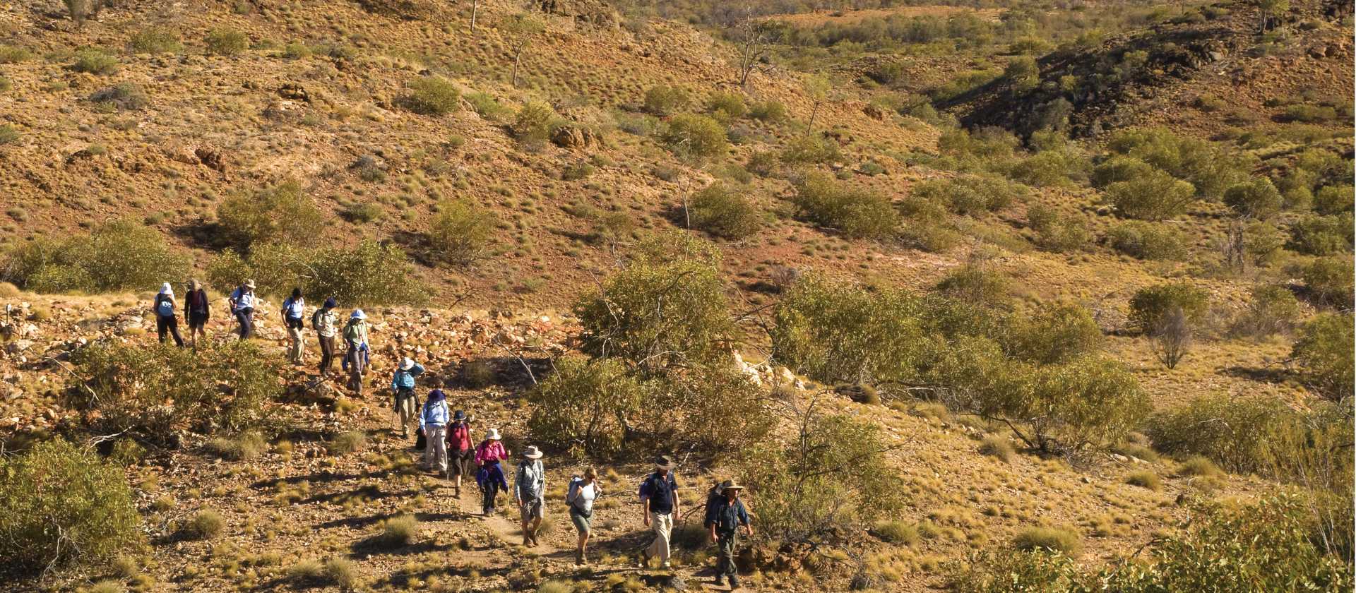 To determine the grade of a particular adventure we consider a number of factors. These include the condition of the walking terrain, the altitude, the number of passes crossings and the length of the trek. The Larapinta 6 day trek is graded introductory to moderate. This trek involves 5 – 7 hours walking each day over rugged terrain with