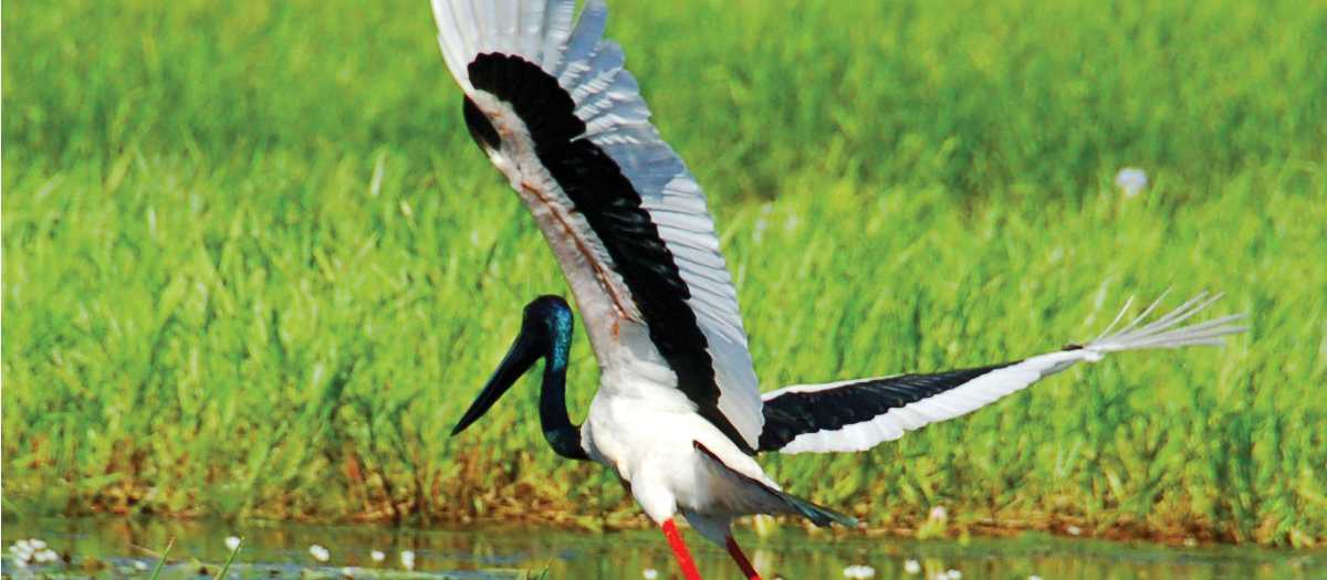 This morning we start our challenge with a transfer from Darwin Central Hotel Accommodation between 7:00 and 7.15am, and heading to meet with Wulna Aboriginal elders for a traditional welcome to country; followed by morning tea, damper and a chance to discuss culture, tradition or walk by the billabong. We then get off the sealed roads and travel east by 4WD along the old Jim Jim Road, passing some of the great wetlands such as Red Lily Billabong. In the afternoon, after setting up at our permanent camp at Djarradjin Billabong in the heart of Kakadu. This evening we will experience a cruise on the nearby Yellow Water billabong, home to an astounding variety of wildlife. Here you may encounter brumbies, wallabies and goannas drinking from the waterside, salt water crocodile and thousands of birds including Magpie Geese, Brolgas, Cormorants, Pelicans and Jabiru, Australia’s largest flying bird. The flat-bottomed boat is guided by an expert wildlife guide.